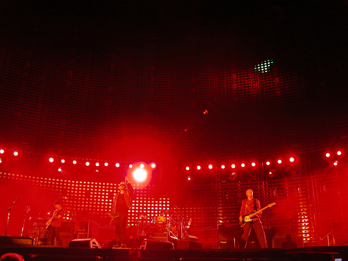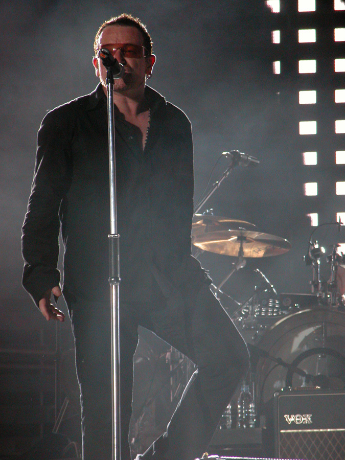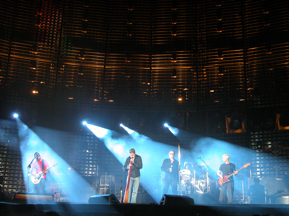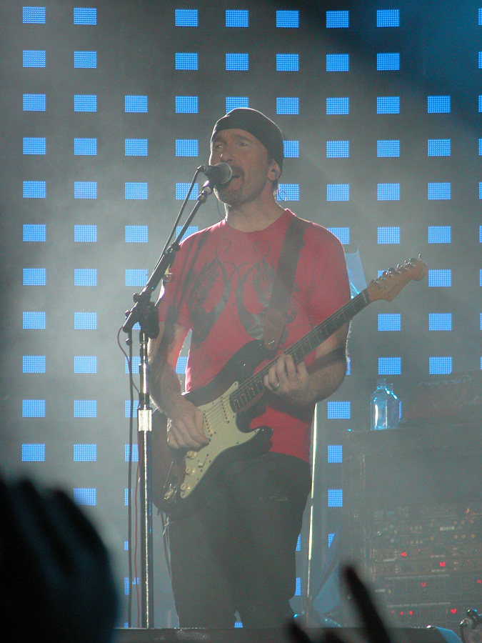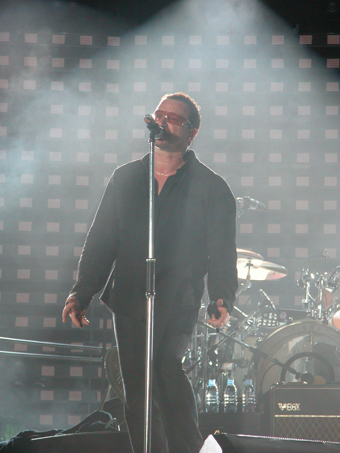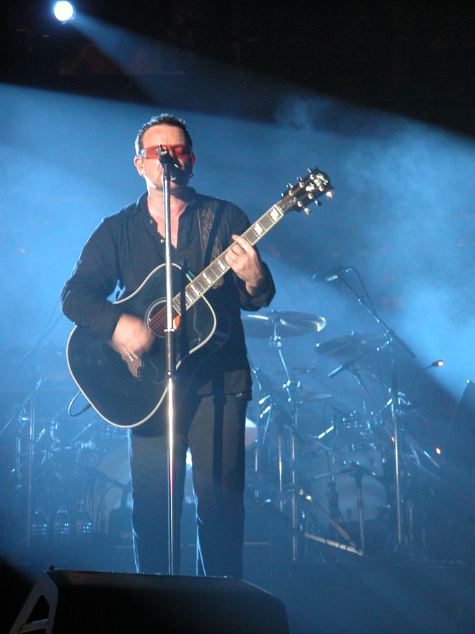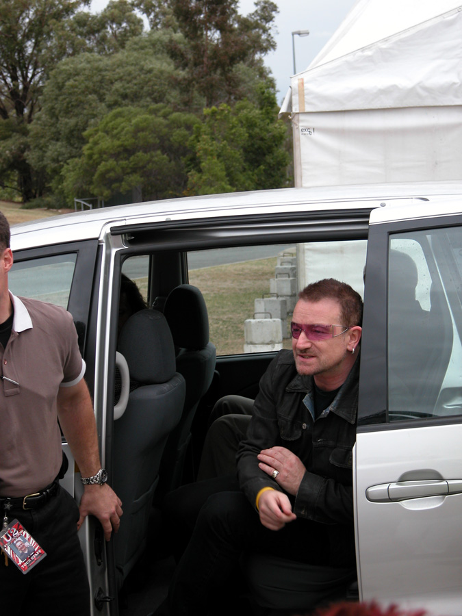 Tomorrow night, Tuesday, there will be 50,000 people there as the band kick off the final leg of the tour. Today, Monday, they ran through the new set again - looks different and the same from the one they were playing when they were last on stage in Argentina in March. We won't spoil the surprise (the set list will be posted here straight after the show) but no surprises about two of the tracks which will feature. They performed City of Blinding Lights and Vertigo for the cameras today, part of a whole series of radio and TV interviews they gave. Will they play more material than earlier on the tour from 'All That You Can't Leave Behind' - which they never toured in Australia? Will they play 'The Saints Are Coming', one of the two new tracks on 'U218 Singles'? Incidentally, in an interview with Kathy McCabe of the Adelaide Advertiser, Bono talks for the first time about the other new track on the album - Window in the Skies. 'With soaring strings and a haunting piano melody the tune is remarkably different to the stadium rock sound of their recent smash hit album, How To Dismantle An Atomic Bomb. It is huge but in a very different way and for a very different reason; Bono is learning to play piano. "I think that's going to be our biggest song in a long time. It's a psychedelic pop song with 6/8 timing, you never hear that. It's very, very rare," he says. "I've been taking piano lessons with my kids and every time I took a lesson, I wrote a song. I had eight lessons and I had eight songs. "They (his bandmates) were all like 'He'll never have any songs this time' and in I bring eight. Whoa! Of course, they have much improved it."