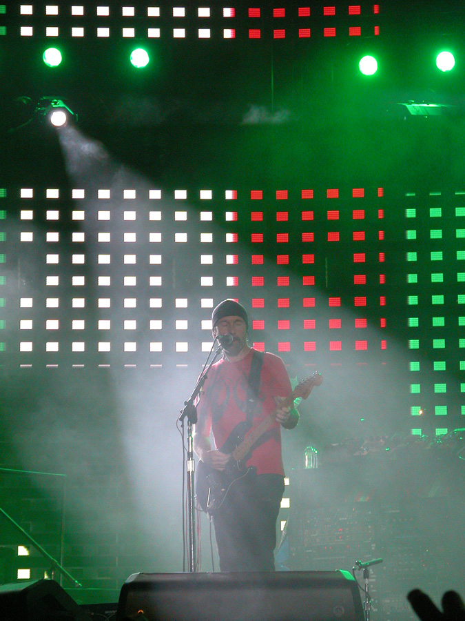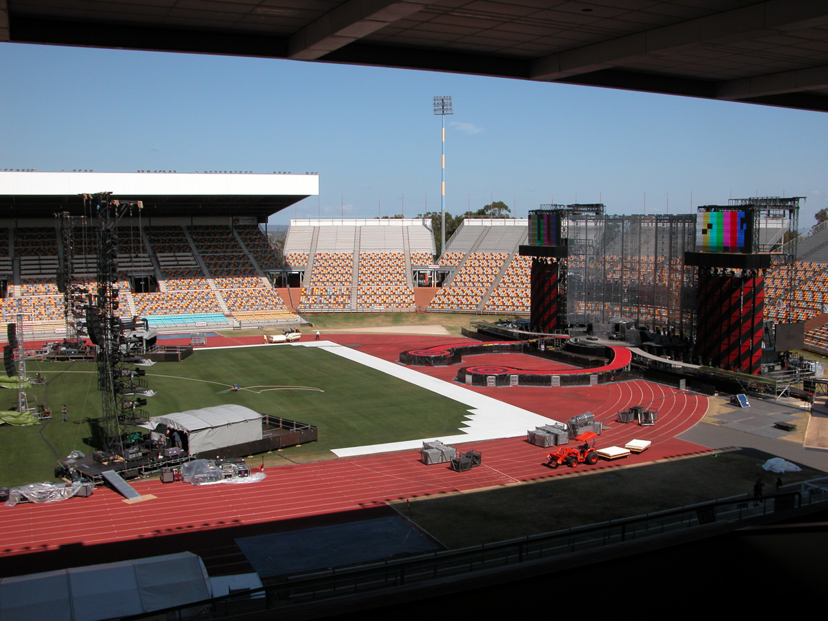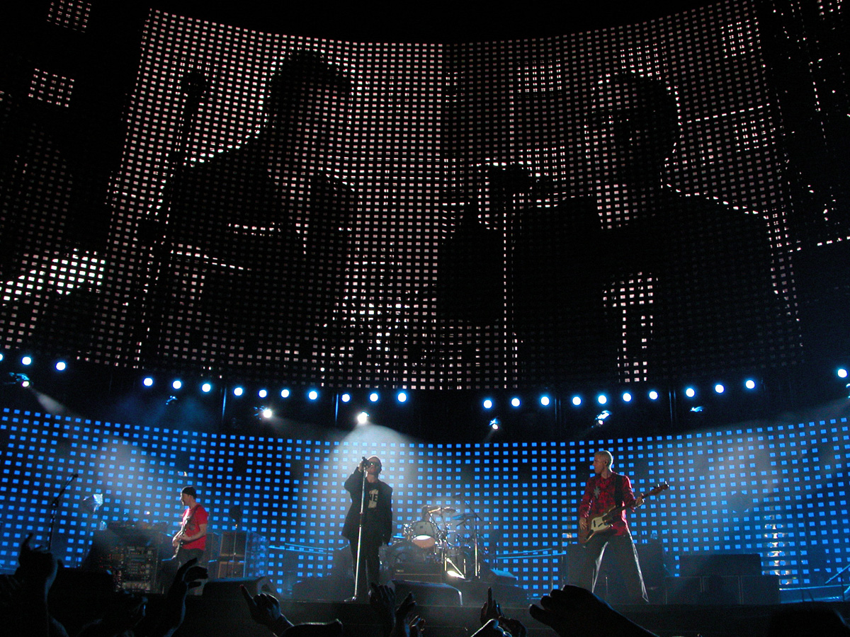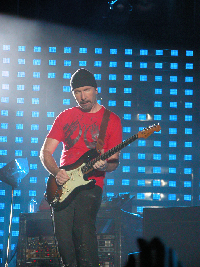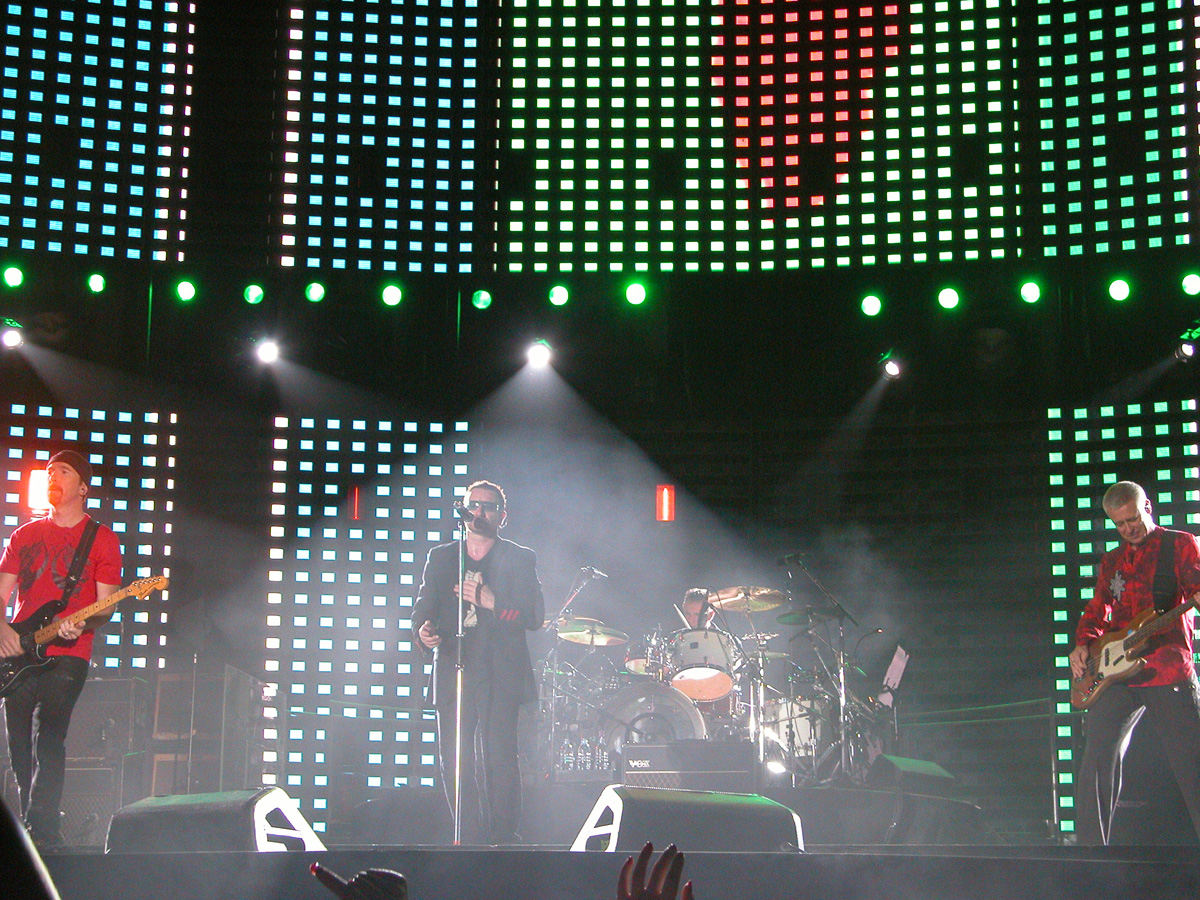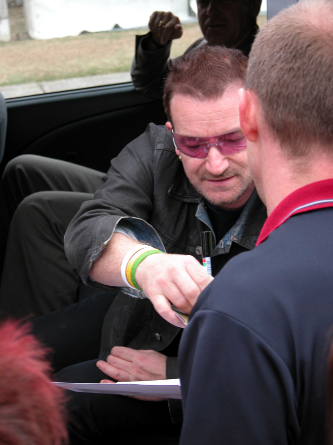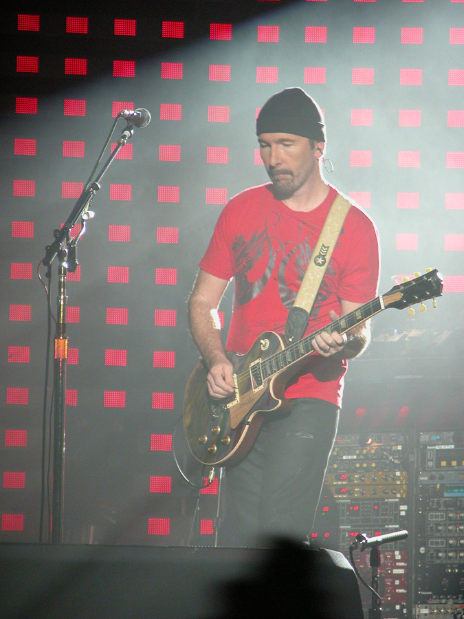 Tomorrow night, Tuesday, there will be 50,000 people there as the band kick off the final leg of the tour. Today, Monday, they ran through the new set again - looks different and the same from the one they were playing when they were last on stage in Argentina in March. We won't spoil the surprise (the set list will be posted here straight after the show) but no surprises about two of the tracks which will feature. They performed City of Blinding Lights and Vertigo for the cameras today, part of a whole series of radio and TV interviews they gave. Will they play more material than earlier on the tour from 'All That You Can't Leave Behind' - which they never toured in Australia? Will they play 'The Saints Are Coming', one of the two new tracks on 'U218 Singles'? Incidentally, in an interview with Kathy McCabe of the Adelaide Advertiser, Bono talks for the first time about the other new track on the album - Window in the Skies. 'With soaring strings and a haunting piano melody the tune is remarkably different to the stadium rock sound of their recent smash hit album, How To Dismantle An Atomic Bomb. It is huge but in a very different way and for a very different reason; Bono is learning to play piano. "I think that's going to be our biggest song in a long time. It's a psychedelic pop song with 6/8 timing, you never hear that. It's very, very rare," he says. "I've been taking piano lessons with my kids and every time I took a lesson, I wrote a song. I had eight lessons and I had eight songs. "They (his bandmates) were all like 'He'll never have any songs this time' and in I bring eight. Whoa! Of course, they have much improved it."