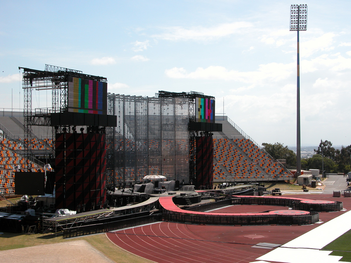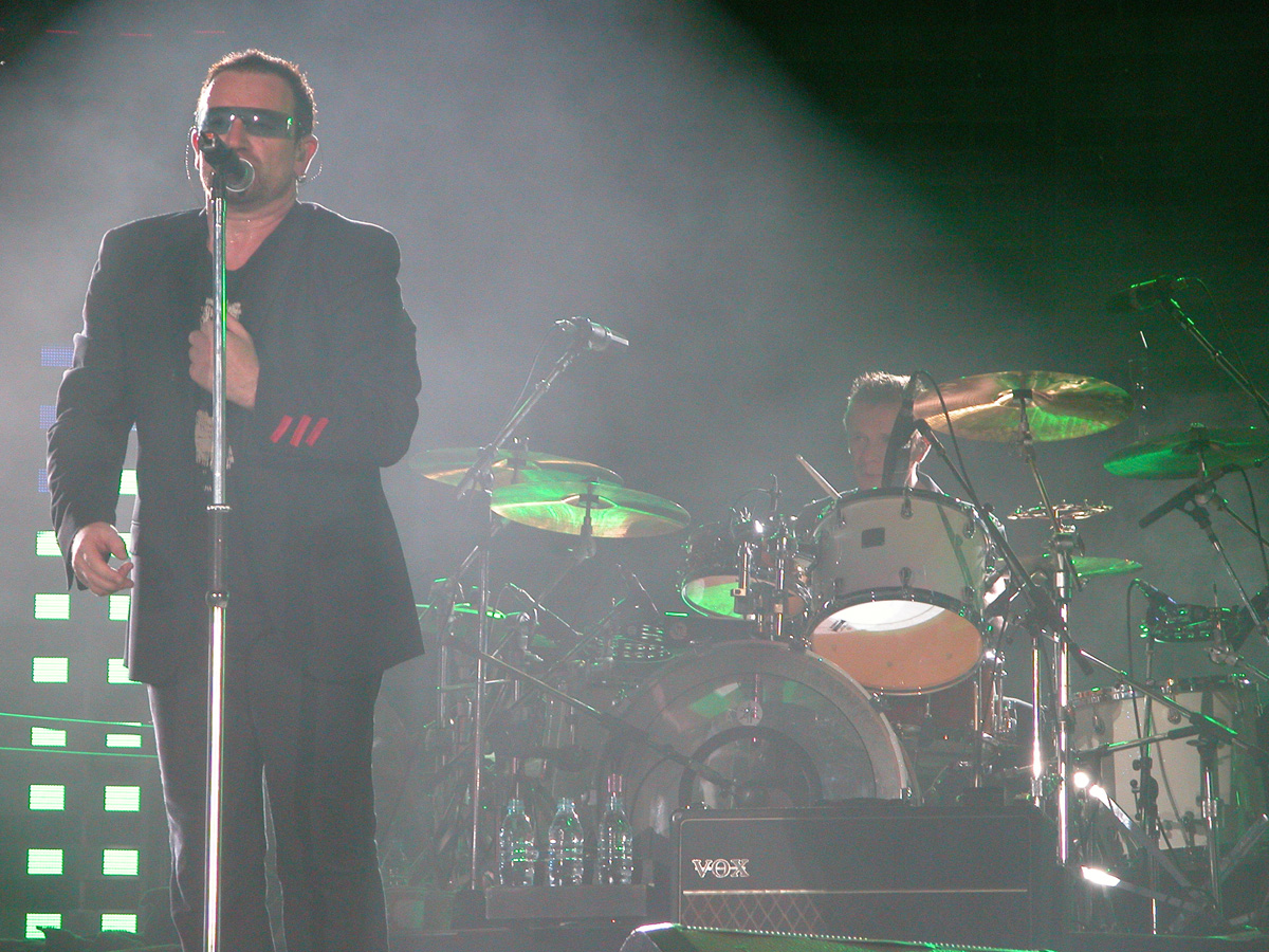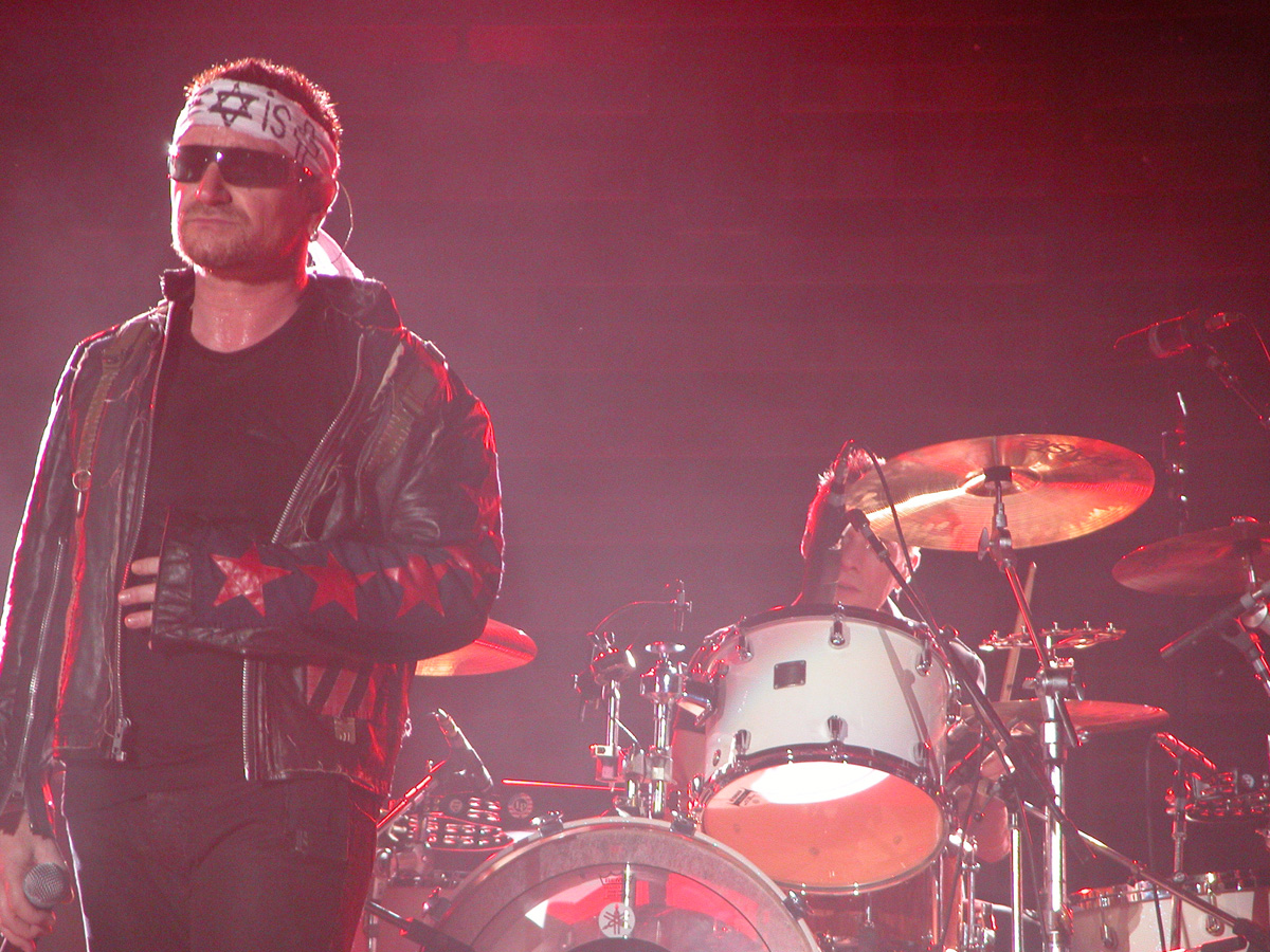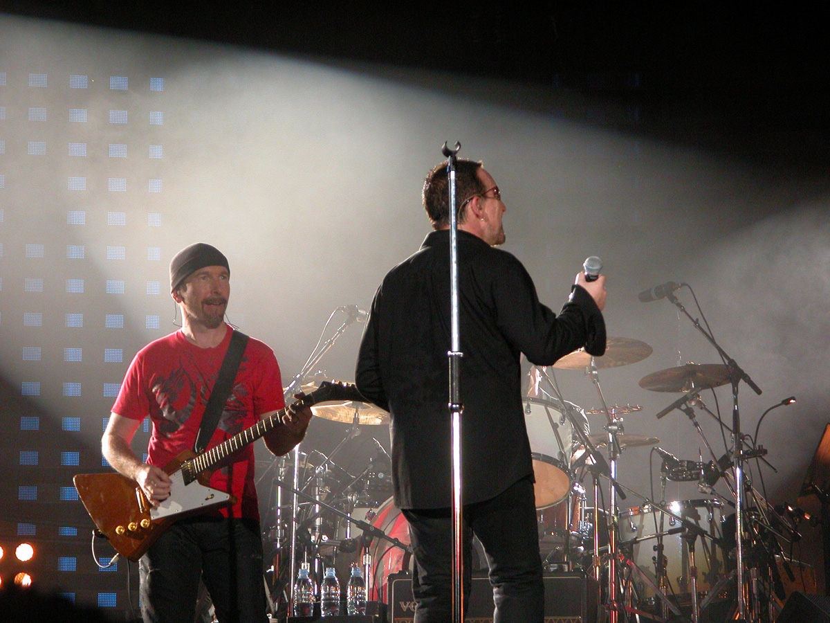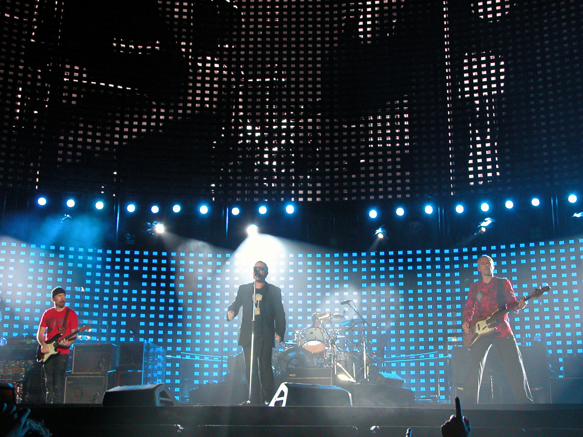 Tomorrow night, Tuesday, there will be 50,000 people there as the band kick off the final leg of the tour. Today, Monday, they ran through the new set again - looks different and the same from the one they were playing when they were last on stage in Argentina in March. We won't spoil the surprise (the set list will be posted here straight after the show) but no surprises about two of the tracks which will feature. They performed City of Blinding Lights and Vertigo for the cameras today, part of a whole series of radio and TV interviews they gave. Will they play more material than earlier on the tour from 'All That You Can't Leave Behind' - which they never toured in Australia? Will they play 'The Saints Are Coming', one of the two new tracks on 'U218 Singles'? Incidentally, in an interview with Kathy McCabe of the Adelaide Advertiser, Bono talks for the first time about the other new track on the album - Window in the Skies. 'With soaring strings and a haunting piano melody the tune is remarkably different to the stadium rock sound of their recent smash hit album, How To Dismantle An Atomic Bomb. It is huge but in a very different way and for a very different reason; Bono is learning to play piano. "I think that's going to be our biggest song in a long time. It's a psychedelic pop song with 6/8 timing, you never hear that. It's very, very rare," he says. "I've been taking piano lessons with my kids and every time I took a lesson, I wrote a song. I had eight lessons and I had eight songs. "They (his bandmates) were all like 'He'll never have any songs this time' and in I bring eight. Whoa! Of course, they have much improved it."