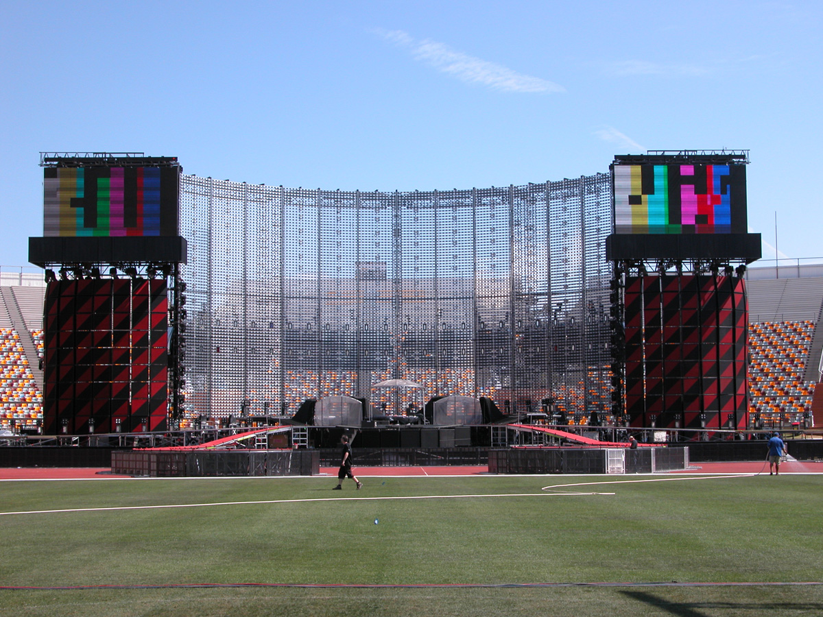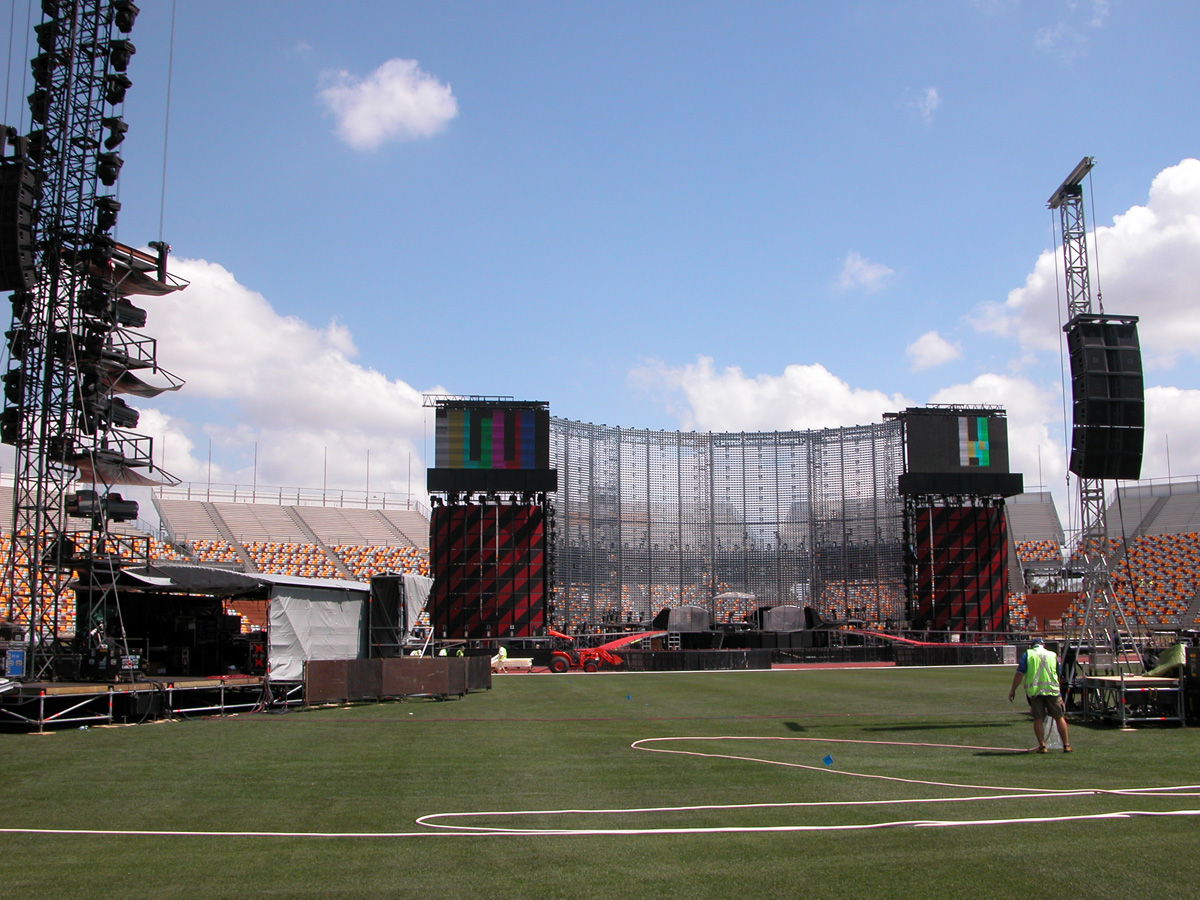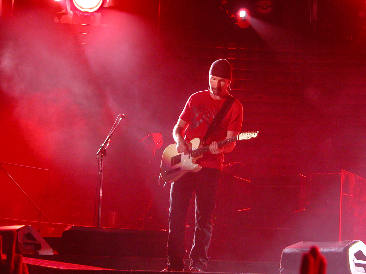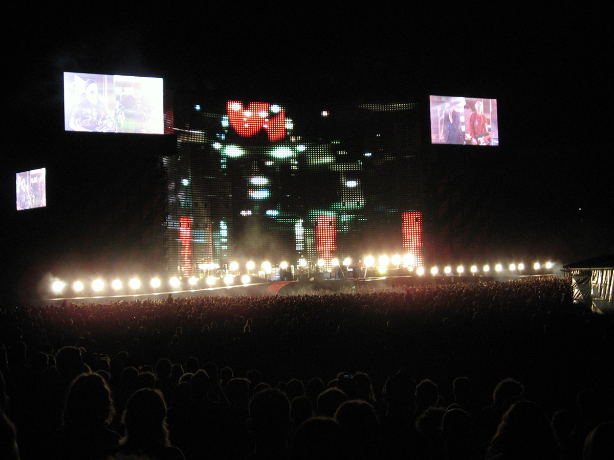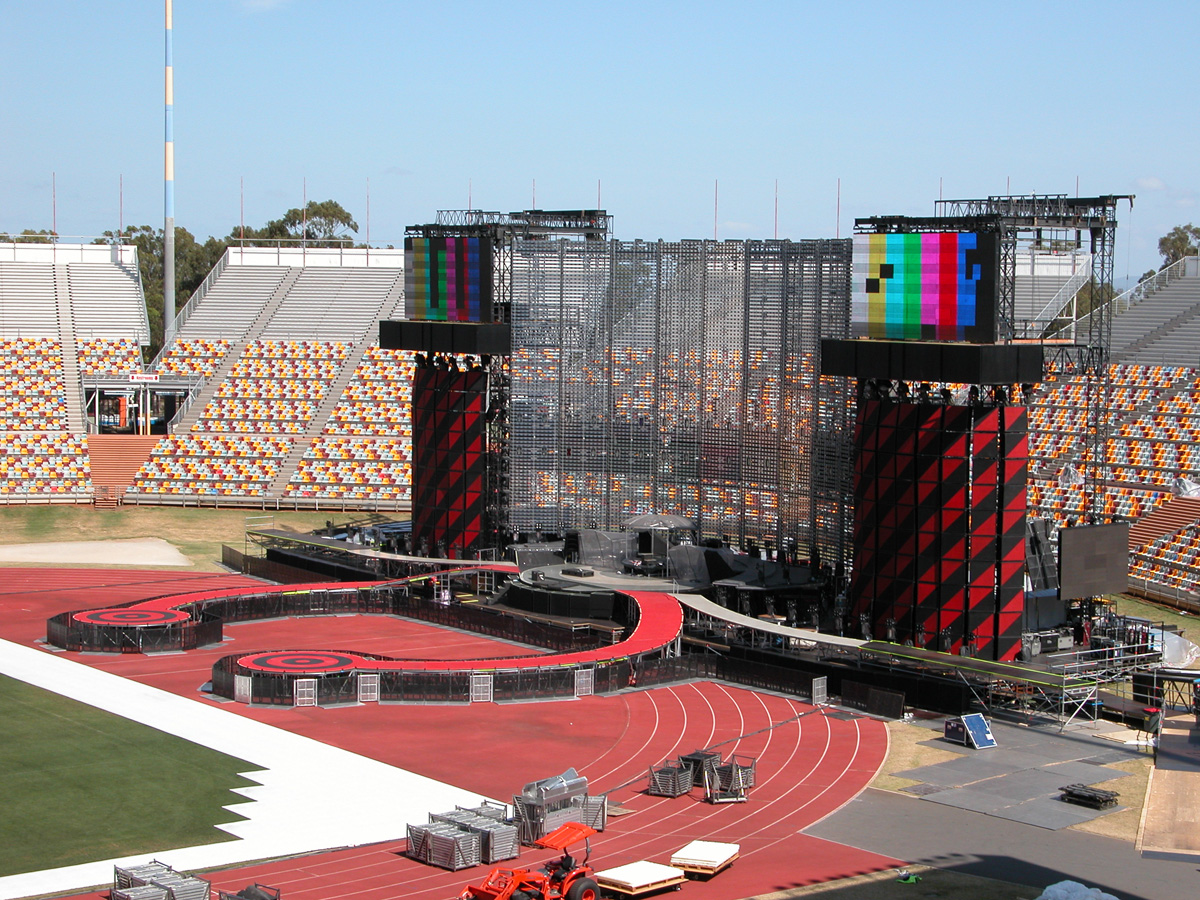 Tomorrow night, Tuesday, there will be 50,000 people there as the band kick off the final leg of the tour. Today, Monday, they ran through the new set again - looks different and the same from the one they were playing when they were last on stage in Argentina in March. We won't spoil the surprise (the set list will be posted here straight after the show) but no surprises about two of the tracks which will feature. They performed City of Blinding Lights and Vertigo for the cameras today, part of a whole series of radio and TV interviews they gave. Will they play more material than earlier on the tour from 'All That You Can't Leave Behind' - which they never toured in Australia? Will they play 'The Saints Are Coming', one of the two new tracks on 'U218 Singles'? Incidentally, in an interview with Kathy McCabe of the Adelaide Advertiser, Bono talks for the first time about the other new track on the album - Window in the Skies. 'With soaring strings and a haunting piano melody the tune is remarkably different to the stadium rock sound of their recent smash hit album, How To Dismantle An Atomic Bomb. It is huge but in a very different way and for a very different reason; Bono is learning to play piano. "I think that's going to be our biggest song in a long time. It's a psychedelic pop song with 6/8 timing, you never hear that. It's very, very rare," he says. "I've been taking piano lessons with my kids and every time I took a lesson, I wrote a song. I had eight lessons and I had eight songs. "They (his bandmates) were all like 'He'll never have any songs this time' and in I bring eight. Whoa! Of course, they have much improved it."